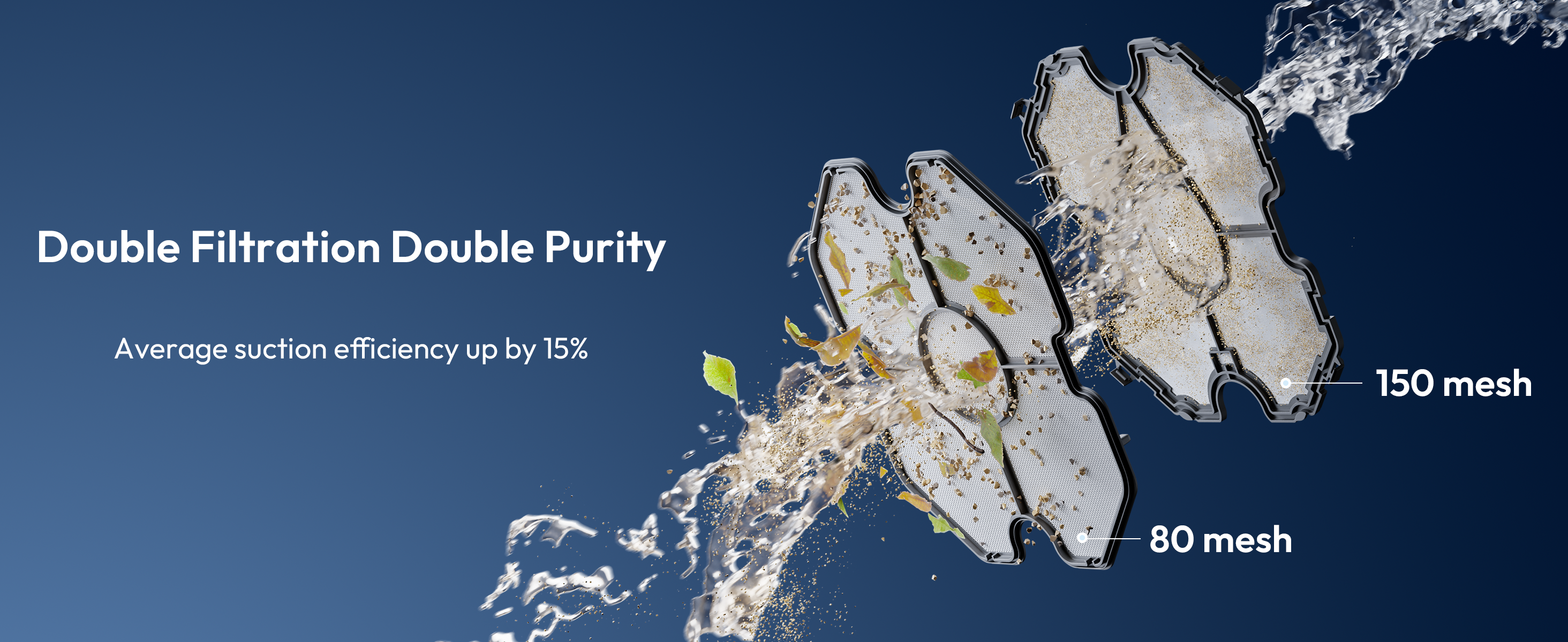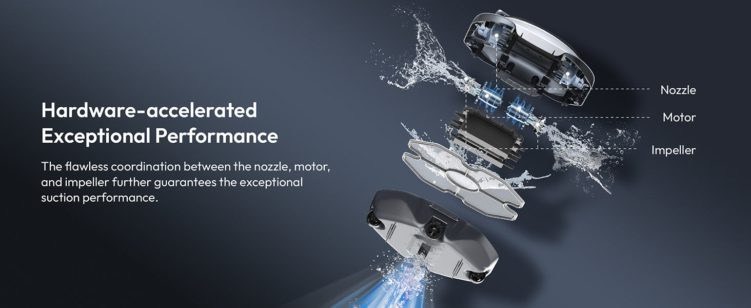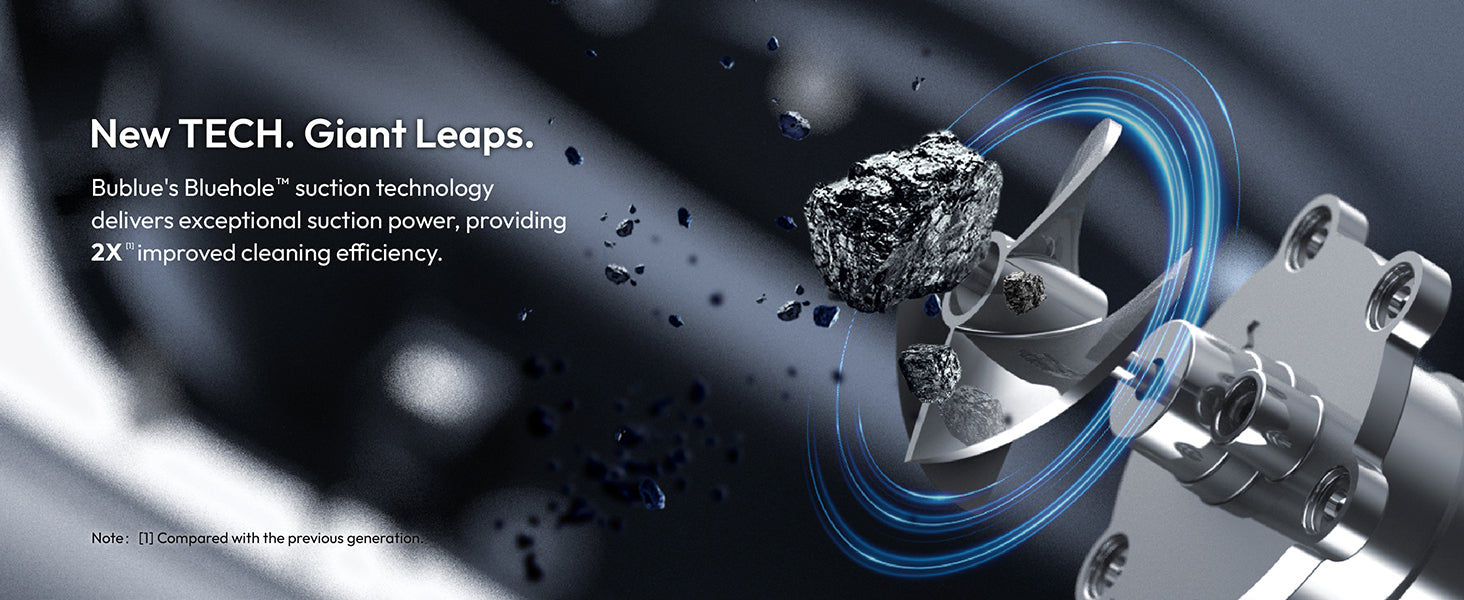 Our enhanced Bluehole suction technology ensures seamless coordination among the nozzle, motor, and impeller, resulting in a 2X increase in efficiency compared to its previous iteration.